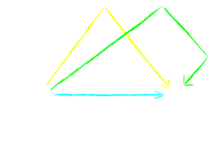 Na obrázku jsou dvě bílé šipky. Ty znázorňují dvě veličiny. Vodorovné můžeme říkat čas a svislé třeba síla zvuku. A jak je vidět, dojde ještě k jedné zajímavé věci. Nejen, že slova, která putují různými cestami, dorazí v různé časy. Ona mají i různou velikost. To je jasné. Při každém odrazu totiž zvuk ztratí trochu svojí velikosti. A ještě k tomu ztratí trochu svojí velikosti, když se jde dál. Takže jsou tři body, kdy dorazí zvuky cestující různými cestami.